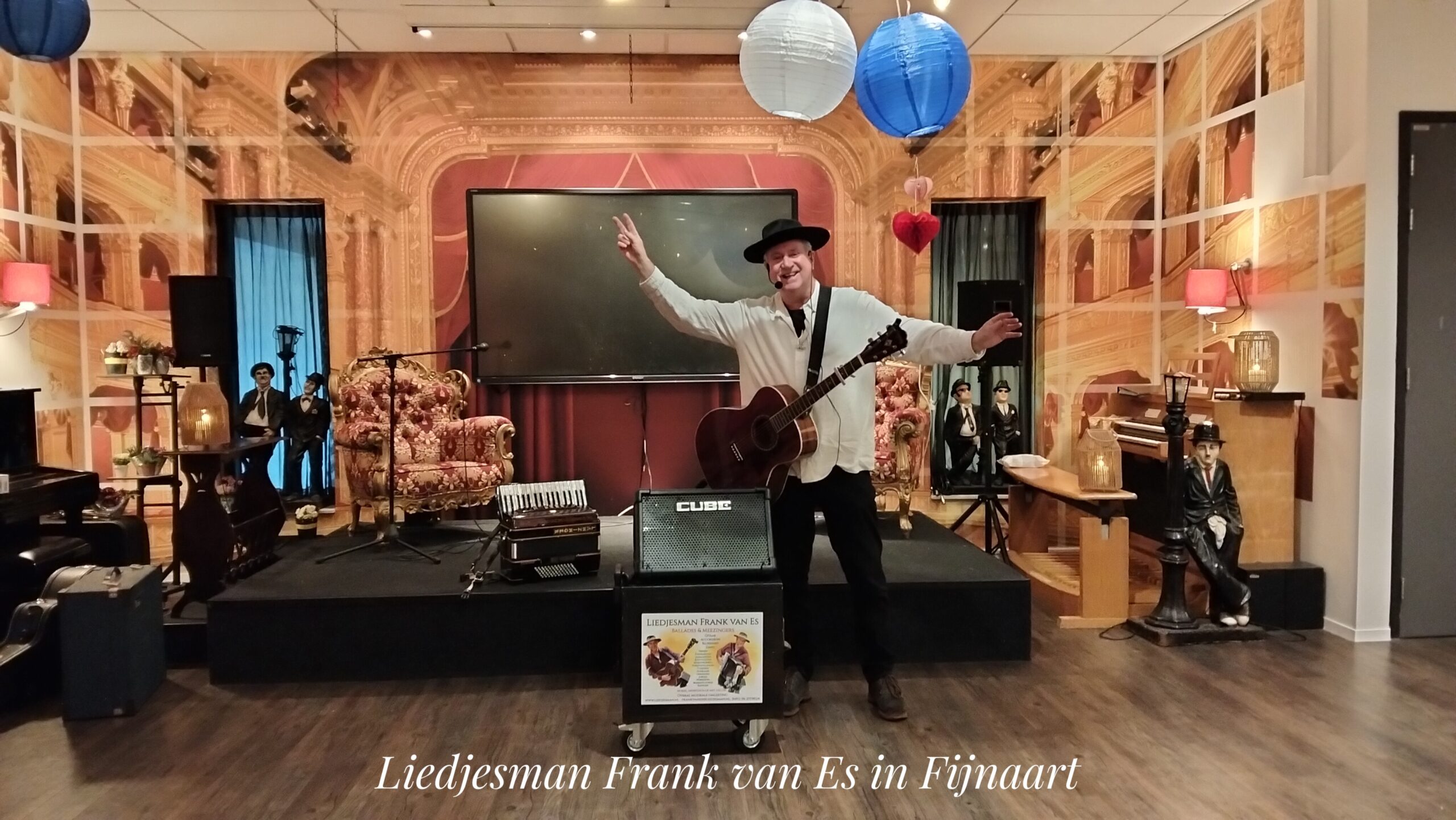 Een dag van tevoren heb ik dus gauw gegoogeld op veelzijdige artiesten en na kort speurwerk stuitte ik op de website www.liedjesman.nl van Frank van Es.